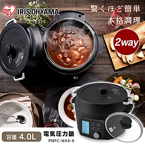 アイリスオーヤマ 電気圧力鍋 4.0L 自動メニュー90種類 2WAYタイプ グリル鍋 ガラス蓋付き レシピブック付き 業界最高出力1000W ブラック 2020年モデル PMPC-MA4-B