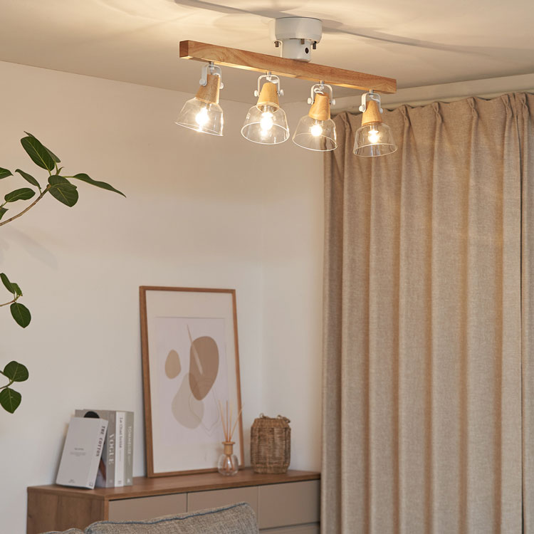 [360円OFF&ポイント10倍! 9/4 20:00-9/5 23:59] 照明 おしゃれ スポットライト シーリングライト 4灯 天井照明 LED電球対応 スポット ライト シーリング LED 間接照明 ガラス 天然木 木製フレーム リビング 新生活