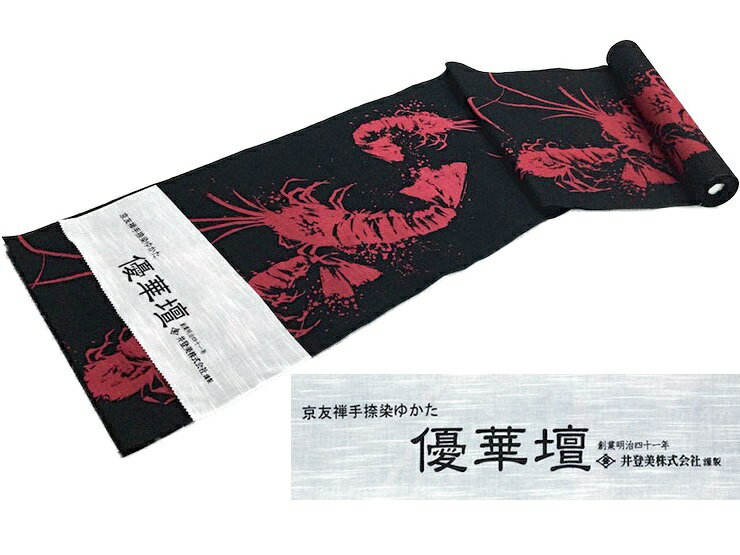 京友禅手捺染浴衣【優華壇】 男性 女性 夏着物 反物 伊勢海老 黒に臙脂 日本製