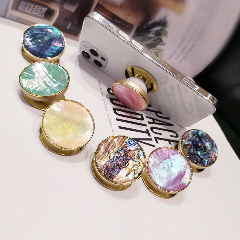 ■商品コメント スマホグリップ スマホスタンド ドットグリップ スタンドギミック フィンガーグリップ エレガントなフレームにきらきらと煌めくオーロラシェルグリップ スマホケースのアクセントにどうぞ♪