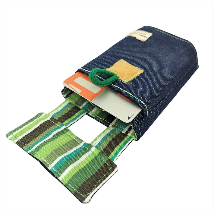 【ぷるる・L】ポケット付 #デニム×ストライプ(緑) キッズ携帯ケース キッズ携帯カバー docomo キッズケータイ SH-03M au マモリーノ5 マモリーノ4 softbank キッズフォン キッズフォン2 ストラップ