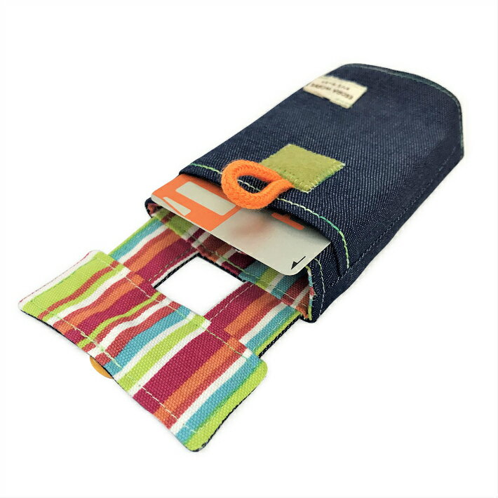 【ぷるる・L】ポケット付 #デニム×カラフルストライプ キッズ携帯ケース キッズ携帯カバー docomo キッズケータイ SH-03M au マモリーノ5 マモリーノ4 softbank キッズフォン キッズフォン2 ストラップ