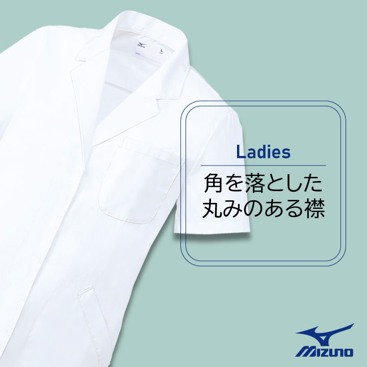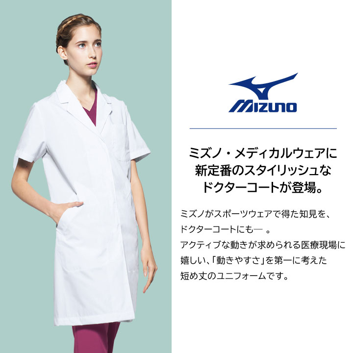 MIZUNO ミズノ - unite ユナイト - ドクターコート(半袖)[女性用] 商品の特長 スポーツメーカー「MIZUNO(ミズノ)」と ユニフォームメーカー「CITOSE(チトセ)」が 共同開発した医療用ユニフォーム。