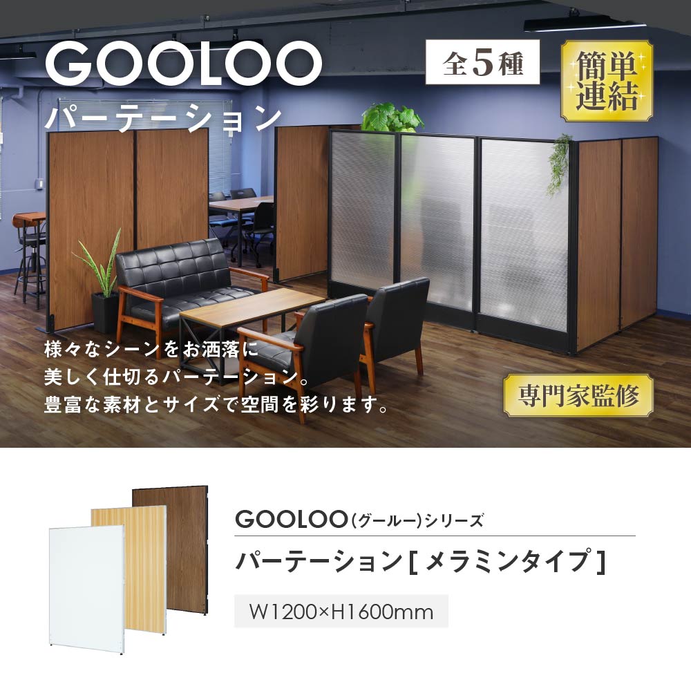 商品情報 商品名 GOOLOO パーテーション 幅1200 高さ1600mm(メラミン) 商品番号 NF-GLP-1612M 組立状態 お客様組立の商品(新品) 特記事項 こちらはパネル1枚の販売ページです。