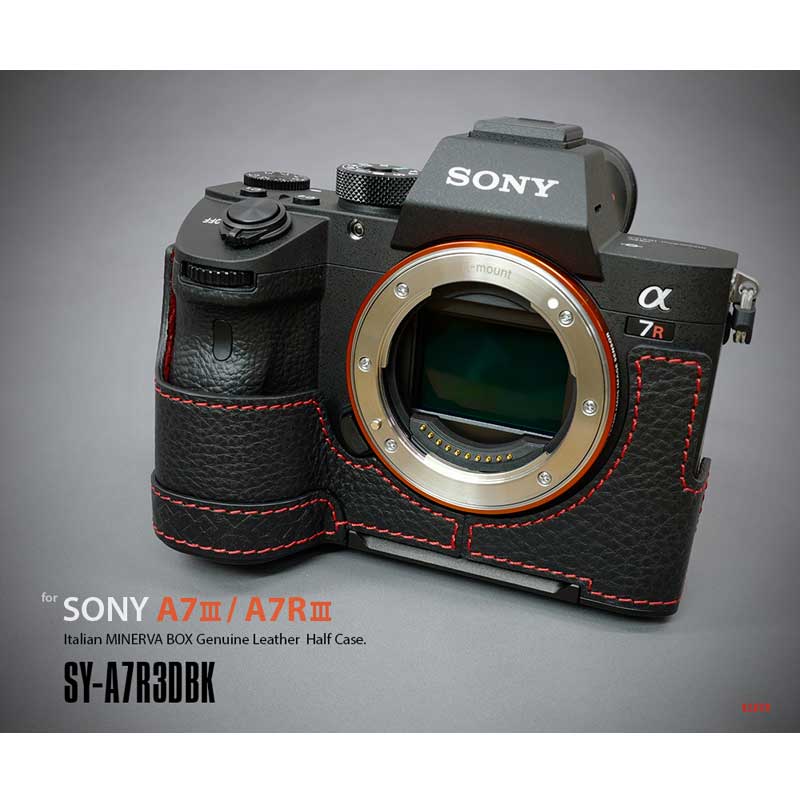 ソニー α7RIII/α7III用イタリアンレザーケース LIM'S Design/リムズ デザイン Italian MINERVA BOX Genuine Leather Half Case for SONY α7RIII/α7III SY-A7R3DBK カラー:Black/ブラック Made in Korea 人気のデジタル一眼カメラ、SONY α7RIII(ILCE-7RM3)/α7III(ILCE-7M3)用ケース。