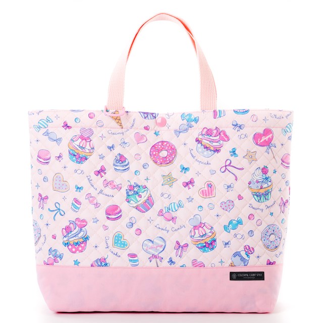 マチ付きキルティングレッスンバッグ (ループ付き) ミルキースイーツのキャンディアラモード 子供用 マチ付きキルティング トートバッグ 手提げバッグ お稽古バッグ 絵本袋 通学 入園グッズ 子供 ピアノ レッスンバック おけいこバッグ ショルダー 肩掛け