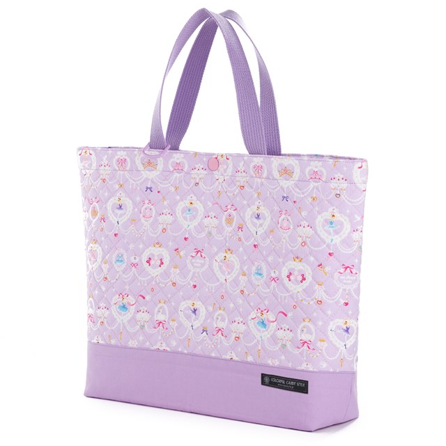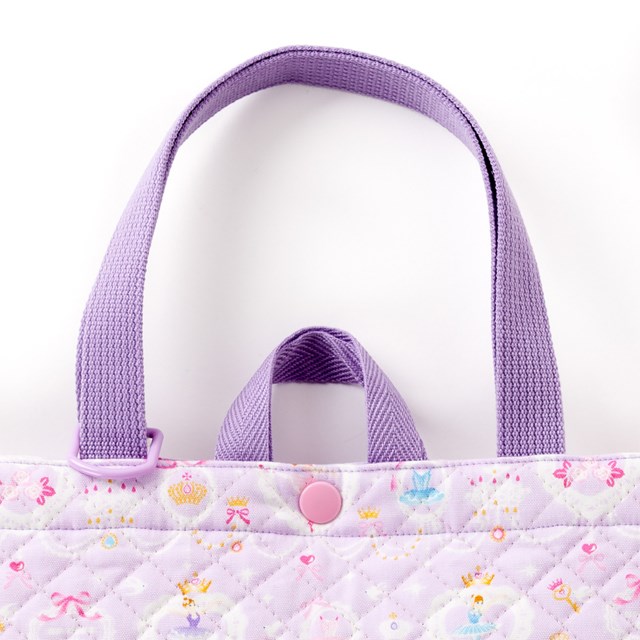 商品名マチ付きキルティングレッスンバッグ(ループ付き) レース模様にprettyバレリーナ(ラベンダー)商品の特長1.お道具箱が収納できる、丈夫なマチ付きキルティングバッグ一般的な大きさのお道具箱(幅約23cm×奥行約33cm×高さ約6cm)が入るマチ付きバッグ。