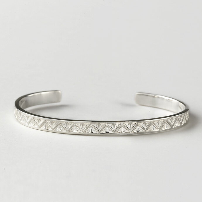 ▼FLUIハンドクラフトコレクション [Triangle] 一覧▼ 商品詳細 説明模様の凹凸から生まれるシルバーの輝きが美しいバングル。